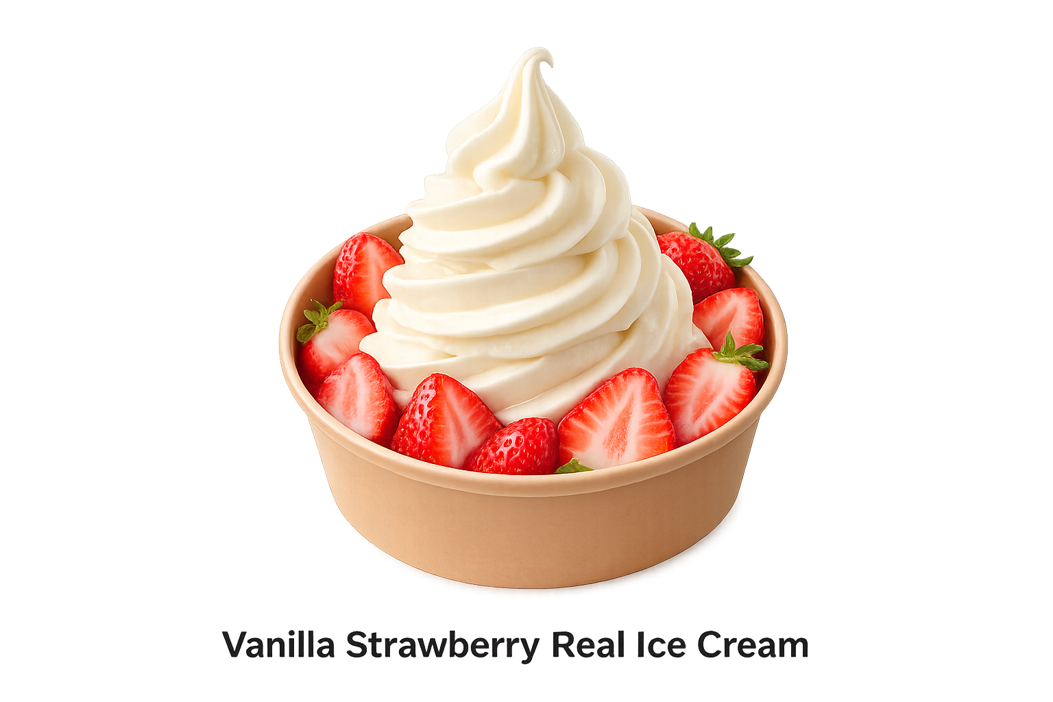 Enjoy the perfect blend of classic vanilla and sweet strawberry flavors in a rich and creamy ice cream.